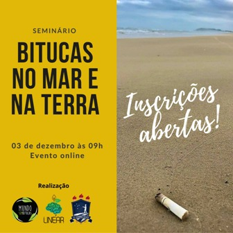 No dia 3 de dezembro, das 9h às 15h, será realizado o 2º seminário “Bitucas no Mar e na Terra - reflexões sobre impactos e soluções”, organizado pelo Mundo Sem Bitucas (MSB), que contará com a presença de pesquisadores nacionais e internacionais. O evento tem o objetivo de chamar a atenção para a poluição causada pelas bitucas de cigarros, um dos resíduos com forte impacto ambiental na água e na terra, porém ainda pouco estudado. As inscrições são gratuitas e podem ser realizadas on-line o dia 23 deste mês no site do evento.