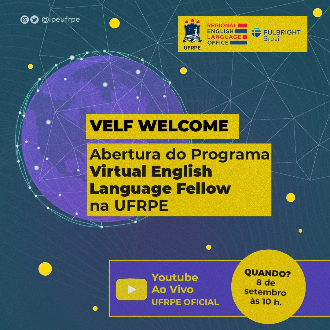No dia 8 de setembro aconteceu o evento de abertura do Programa Virtual English Language Fellow and Specialist (VELF), com transmissão pelo canal do YouTube (https://www.youtube.com/
