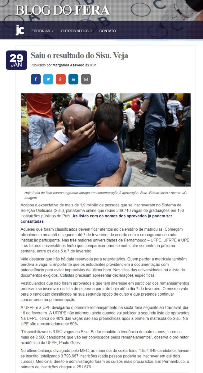 [BLOG DO FERA] Saiu o resultado do Sisu. Veja