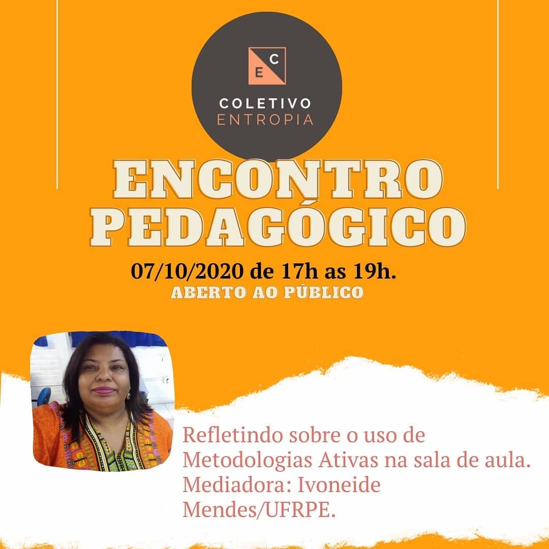 Nesta quarta-feira (07/10), o projeto de ensino Coletivo Entropia realizará mais uma das suas reuniões pedagógicas com caráter formativo. Desta vez a mediadora será a professora da UFRPE, Ivoneide Mendes,