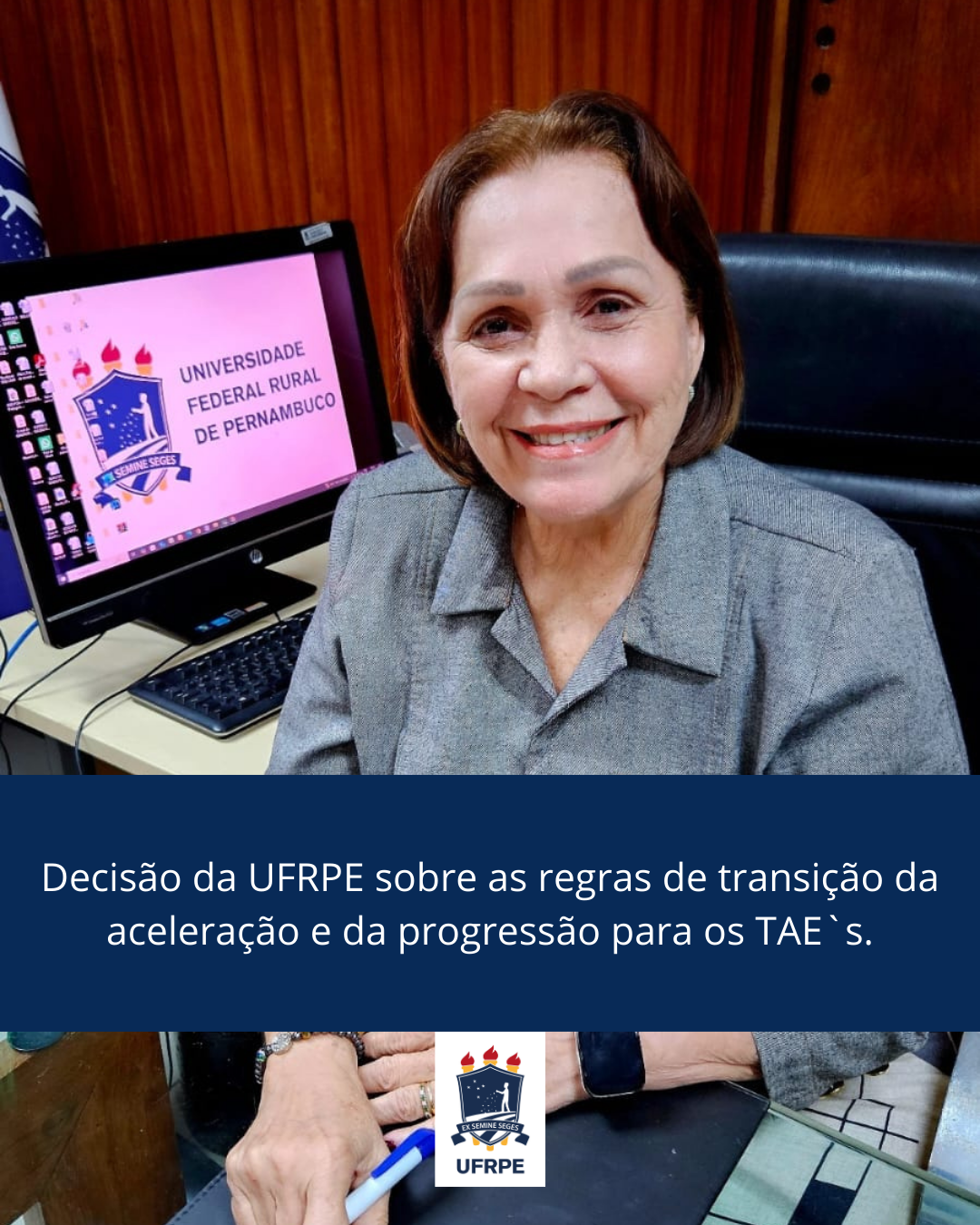 A reitora da Universidade Federal Rural de Pernambuco, Professora Maria José de Sena, definiu que a UFRPE irá aplicar imediatamente as novas regras de transição para aceleração por capacitação e progressão por mérito definidas pela Medida Provisória no. 1286/2024. A decisão, tomada em conjunto com a Progepe, se deu após uma análise da situação, durante reunião nesta quinta-feira (08/05).
