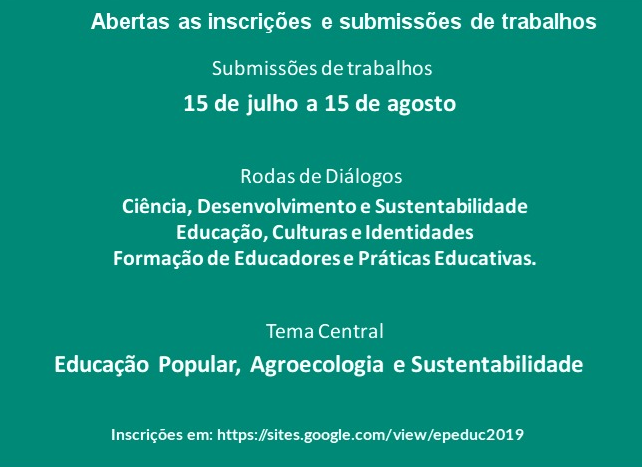 Continuam abertas as submissões de trabalhos e as incrições podem ser feitas pelo https://www.sympla.com.br/iii-encontro-de-pesquisa-em-educacao__592164. Mais informa
