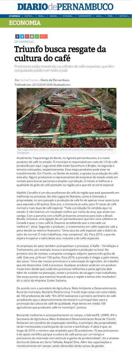 [DIÁRIO DE PERNAMBUCO] Triunfo busca resgate da cultura do café