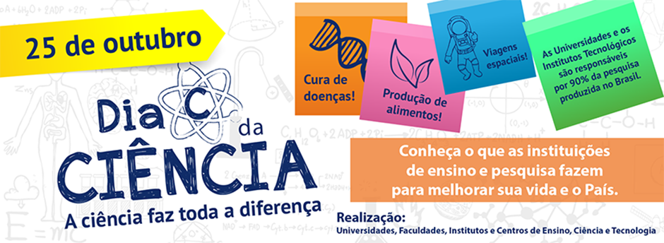 A fim de sensibilizar a sociedade para a importância da ciência e da pesquisa no âmbito das universidades – responsáveis por 90% da produção científica Brasil, as Instituições Federais de Ensino Superior promovem, no próximo dia 25 de outubro, o Dia C da Ciência. A iniciativa ocorre durante a Semana Nacional de Ciência e Tecnologia, a partir de atividades em escolas, museus, espaços públicos e institucionais, com foco nos impactos que o conhecimento científico tem na vida das pessoas.