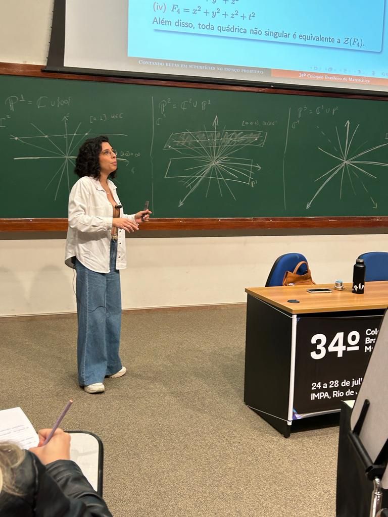 A docente Bárbara Costa da Silva, participou da sessão temática sobre “Geometria Algébrica e Álgebra Comutativa”, apresentando o trabalho intitulado "Lefschetz properties for quadratic Stanley-Reisner Antinianizations and their idealizations”.