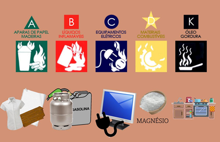 E, por fim, a classe de incêndio K, a qual ocorre em cozinhas, cujo fogo atinge óleos e gorduras.