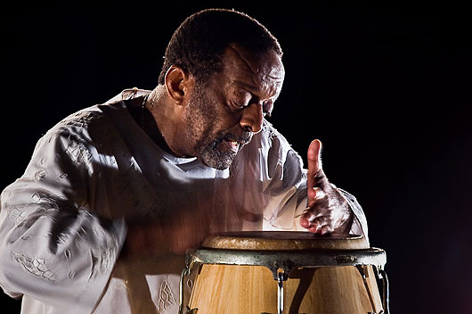 Juvenal de Holanda Vasconcelos - Naná Vasconcelos – nasceu no Recife em 1944. Mesmo depois de duas décadas tocando pelo mundo, morou em Paris e Nova York; as influências de sua terra estão presentes em tudo o que faz. Dotado de uma curiosidade intensa, indo da música erudita do brasileiro Villa-Lobos ao roqueiro Jimi Hendrix, Naná aprendeu a tocar praticamente todos os instrumentos de percussão, embora, nos anos 60, tenha se especializado no berimbau.