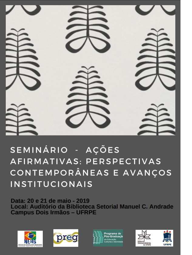 Hoje e amanhã (20 e 21/05), na Biblioteca Setorial, o NEAB (Núcleo de Estudos Afro-brasileiros) da UFRPE vai promover seminário. Com o objetivo de tratar das Ações Afirmativas: perspectivas contemporâneas e avanços institucionais, o evento terá três mesas.