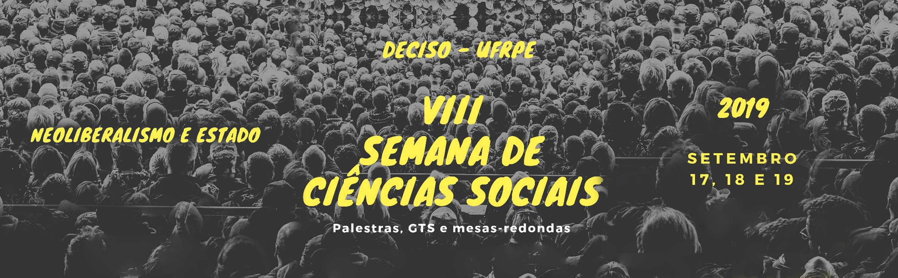 Acontecerá entre os dias 17 e 19 de setembro a Semana de Ciências Sociais no campus Dois Irmãos - Recife. O evento científico tem por objetivo promover a atualização e o intercâmbio entre estudantes e professores de Cursos de Ciências Sociais do Nordeste e de outras regiões. A atividade de integração acadêmica promoverá vários espaços de discussão, que envolvem oficinas (2), Grupos de Trabalho (9), rodas de diálogo (3), minicursos (7), mesas redondas (1) e o lançamento da Revista Caboré. As inscrições continuam abertas até sexta-feira (13/09) pelo link: http://bit.ly/SCSINSCRICOES.