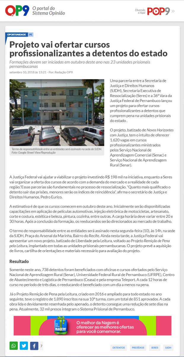 [OP9] Projeto vai ofertar cursos profissionalizantes a detentos do estado