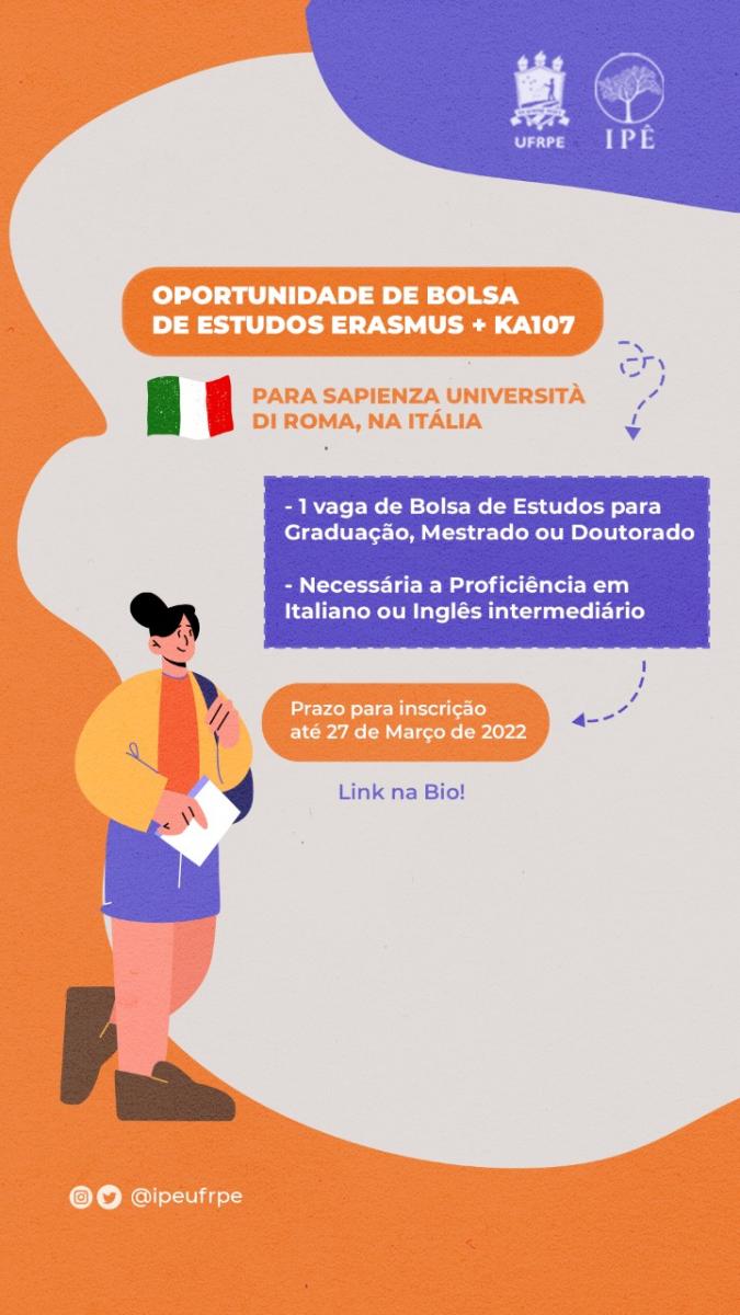 OPORTUNIDADE DE BOLSA DE ESTUDOS PARA O PROGRAMA ERAMUS +K107 NA ITÁLIA