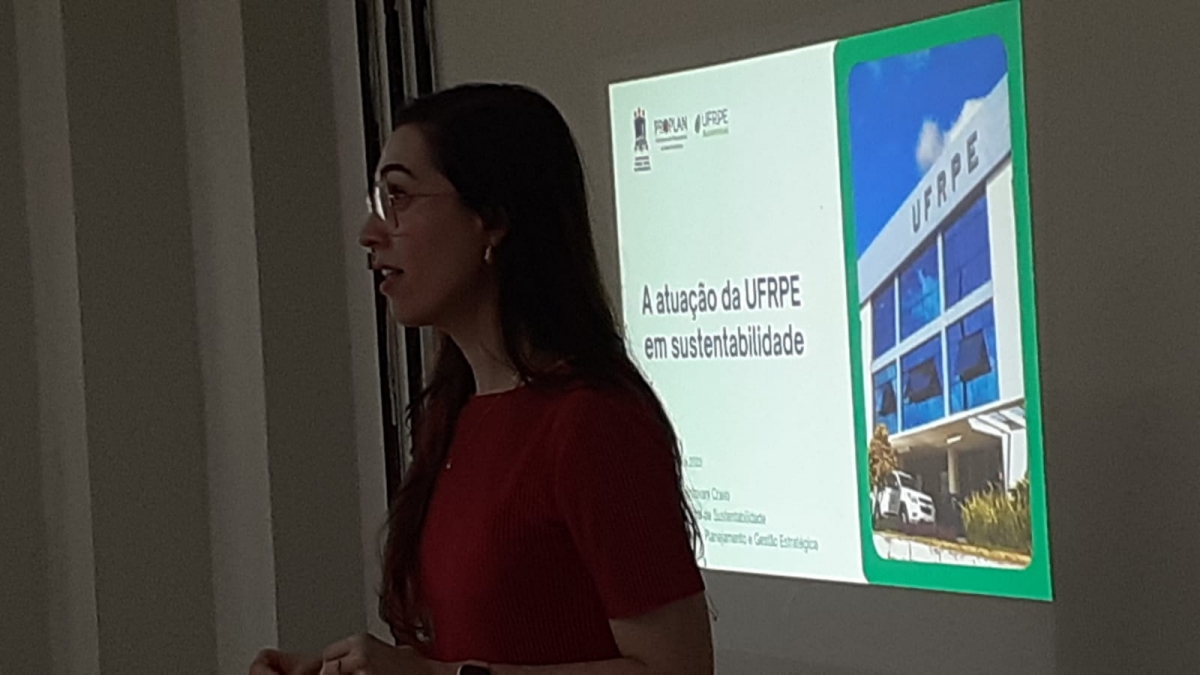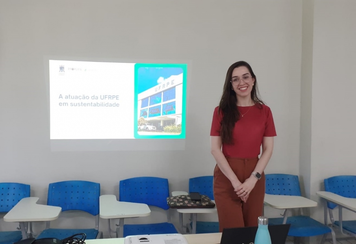No mês de agosto, a coordenadora de sustentabilidade da Pró-Reitoria de Planejamento e Gestão Estratégica da UFRPE, Janielly Mantovani Cravo, proferiu a palestra intitulada "A atuação da UFRPE em Sustentabilidade", para alunos/as da graduação do Bacharelado em Gastronomia, na disciplina Gestão Ambiental e Responsabilidade Social A, ministrada pelo professor José de Lima Albuquerque, do Departamento de Administração , DADM/UFRPE e coordenador do Mestrado Profissional em Administração Pública em Rede Nacional -PROFIAP/UFRPE. Uma iniciativa para divulgar as ações de responsabilidade socioambiental da UFRPE e contribuir para a formação sólida dos alunos/as de graduação.