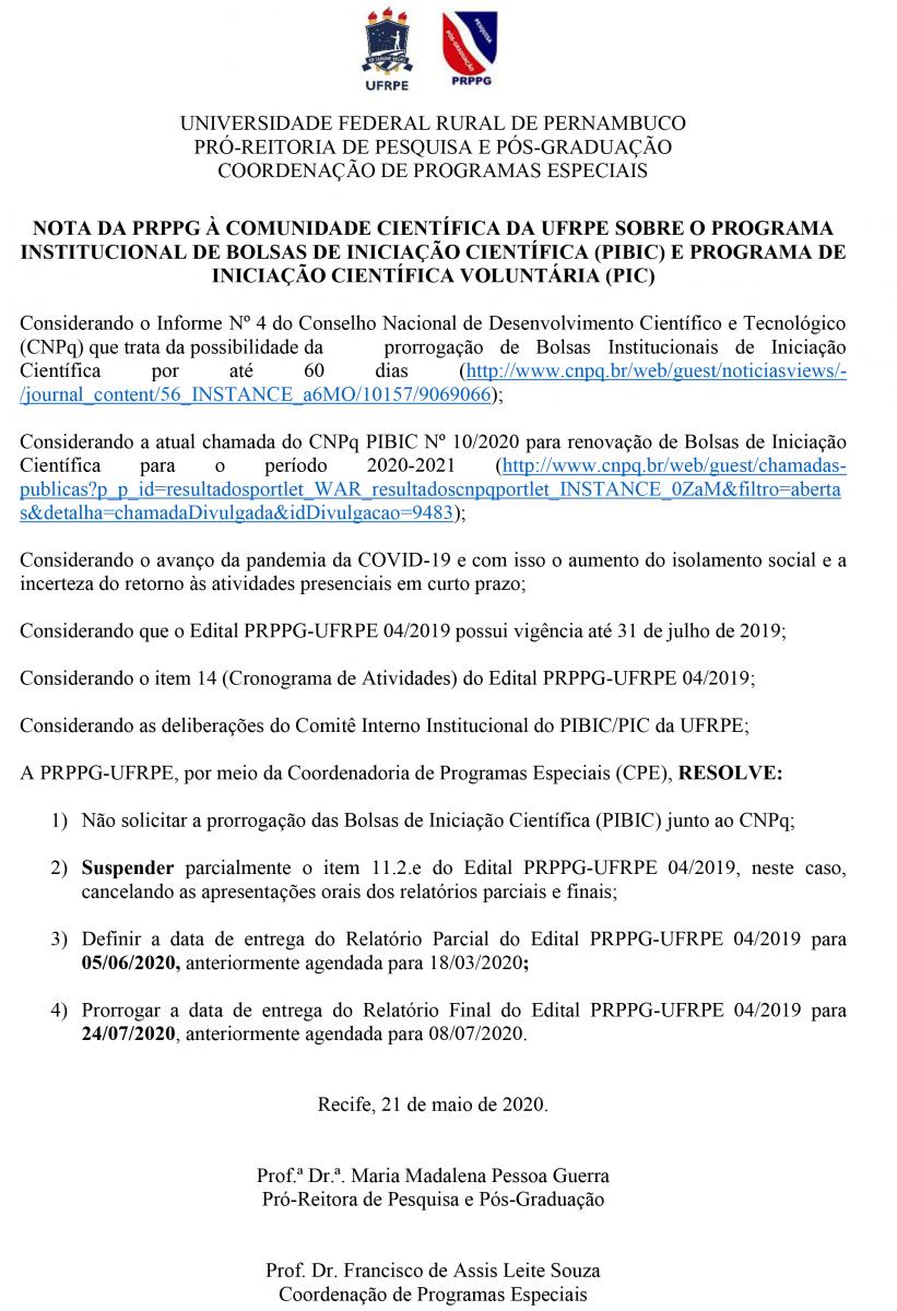 PRPPG emite comunicado sobre o PIBIC e PIC