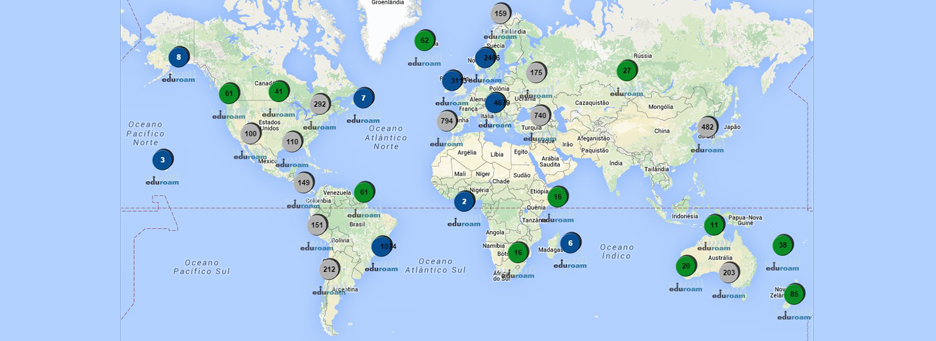 - O mapa dos pontos de acesso ao serviço eduroam no mundo está disponível em: http://monitor.eduroam.org/eduroam_map.php?type=all