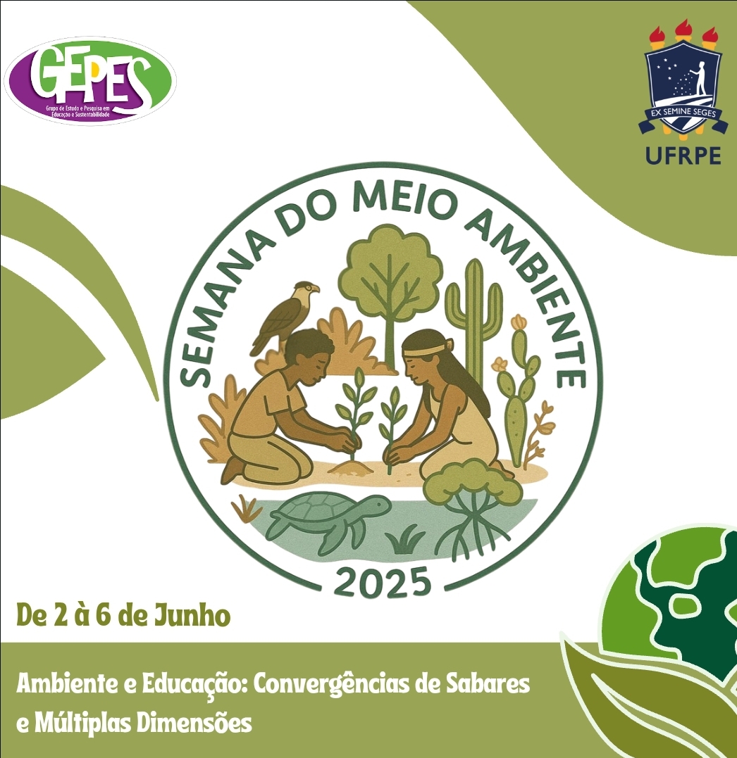 A Semana do Meio Ambiente 2025 será de 02 a 06 de junho com a temática “Ambiente e Educação: Convergências de Saberes em Múltiplas Dimensões”. O objetivo é mobilizar as comunidades acadêmica e escolares em ações educativas integradas à Jornada da Terra 2025. As atividades envolvem prioritariamente professores, pesquisadores, estudantes do ensino superior e da educação básica.