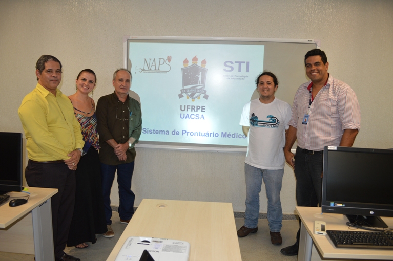 Da esquerda para a direita: Adilson Alves (UACSA, dir. adm.), Karla Giselly (NAPS), prof. Marcelo Brito (UACSA, dir. acad.), Antônio William (NTI) e Marcos Castro (NTI).