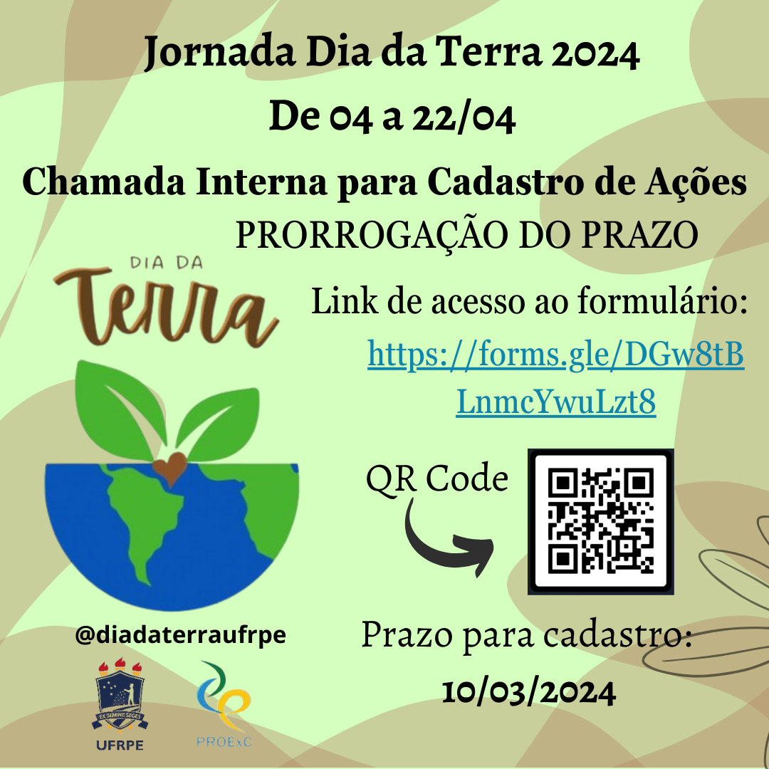 O Brasil, país com a maior biodiversidade do planeta, tem papel fundamental na defesa dos complexos problemas de destruição e desequilíbrios ambientais. Conscientes disso, em 2023, a UFRPE realizou pela primeira vez no estado de Pernambuco um grande evento, descentralizado e com ações diversificadas, de celebração ao Dia da Terra. As ações foram planejadas e executadas em parceria com a Associação Dia da Terra Brasil e uma grande rede composta por coletivos, ONGs, instituições públicas e privadas, movimentos sociais etc.