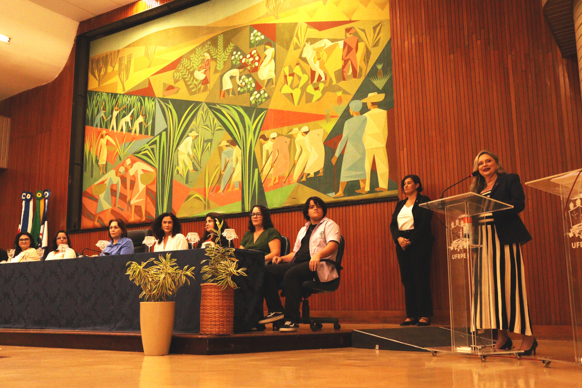 A Reitora Maria José de Sena destacou na sua fala a história da UFRPE, que começou com apenas dois cursos de graduação com o objetivo de disponibilizar alimentos para a população e que hoje está do litoral ao sertão, com ensino, pesquisa e extensão em uma universidade consolidada que sabe o que quer e onde quer chegar. A gestora ainda contou um pouco de sua trajetória para mostrar que não se deve ceder às dificuldades: “Eu já estive nesta posição de vocês. Sempre fui da rede pública e não sabia nada quando cheguei aqui e agarrei com unhas e dentes esta oportunidade. A jornada será desafiadora, não será fácil, mas o importante é seguir em frente sempre sem desistir. A universidade pública é o melhor espaço de uma formação cidadã crítica para poder reivindicar os nossos direitos, o nosso espaço. Não abram mão dessa oportunidade.”
