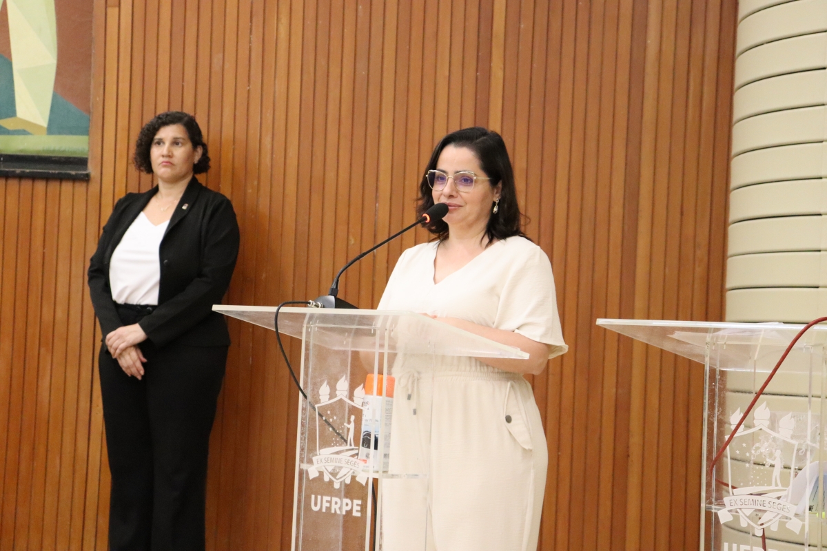 Maria Beatriz Veloso, do curso de Bacharelado em Agronomia, representou os estudantes no evento e falou sobre as mudanças na vida ao entrar em uma universidade pública: “A UFRPE se tornou minha segunda casa, porque aqui acontece uma virada de chave na vida da gente. Aqui se evolui muito acadêmica e pessoalmente e entendemos o poder de mudança que o estudo tem na vida da gente. Vocês irão viver isso na prática porque vocês não só estudam na UFRPE, mas são a UFRPE. Vivam e aproveitem daquilo que a universidade pode propiciar”.