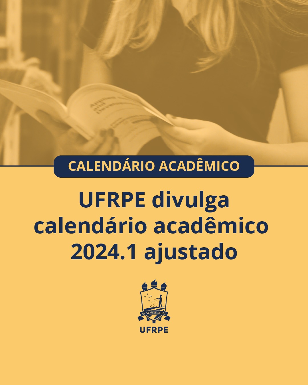 A Universidade Federal Rural de Pernambuco (UFRPE), por meio da Pró-Reitoria de Ensino de Graduação (PREG), divulga o Calendário Acadêmico 2024.1. O Calendário foi aprovado por meio da Resolução do Conselho de Ensino, Pesquisa e Extensão (CEPE). As alterações no Calendário Acadêmico foram amplamente discutidas.