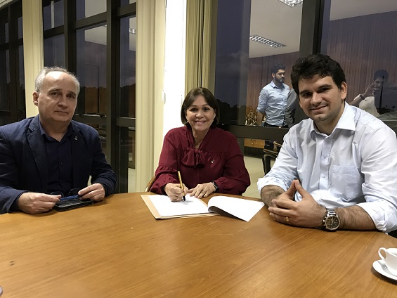A reitora da UFRPE, professora Maria José de Sena, e o vice-reitor, professor Marcelo Carneiro Leão, receberam, na última quarta-feira (30/8), o prefeito do município de Paudalho, Marcello Gouveia, para assinatura de Protocolo de Intenções entre aquele município e a UFRPE.