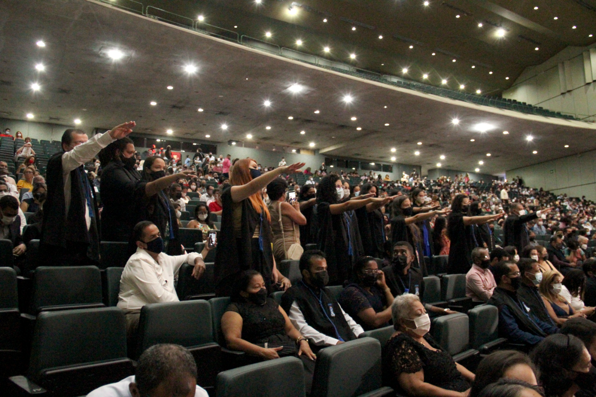 A pró-reitora de Ensino de Graduação, professora Maria do Socorro de Lima Oliveira, afirmou que a solenidade de Colação de Grau realizada representa o resultado de um esforço conjunto. Professores(as), coordenações de curso, equipes técnicas e de suporte estiveram comprometidas durante a pandemia da Covid-19, a fim de que os profissionais pudessem se formar com qualidade.