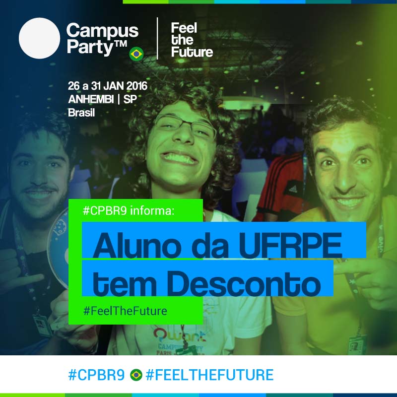 Clique no link e confira a promoção exclusiva para alunos da UFRPE: http://mailing.campus-party.org/mailing/2016/universidades/UFRPE.html