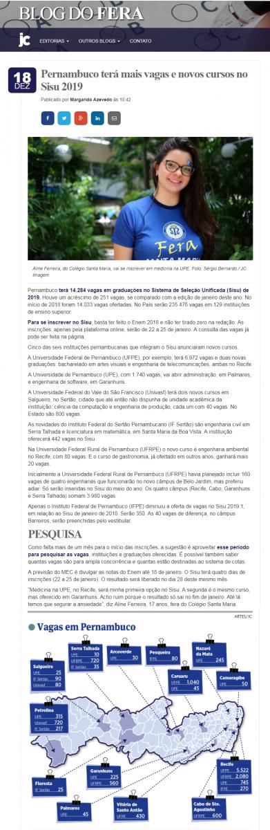 [BLOG DO FERA] Pernambuco terá mais vagas e novos cursos no Sisu 2019