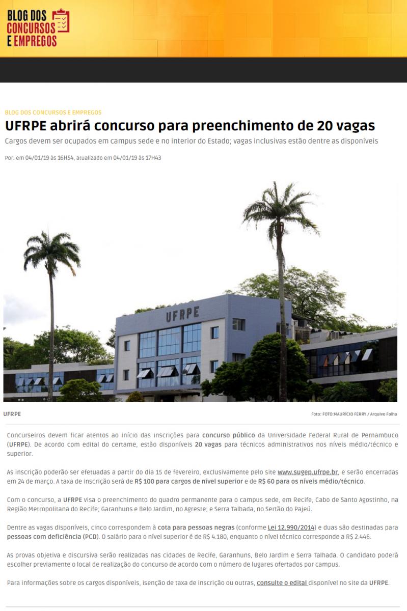 [BLOG DOS CONCURSOS E EMPREGOS] UFRPE abrirá concurso para preenchimento de 20 vagas