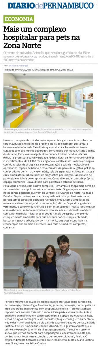 [DIÁRIO DE PERNAMBUCO] Mais um complexo hospitalar para pets na Zona Norte