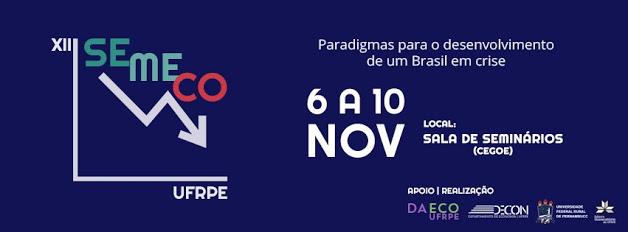 The course of Economic Sciences of the Federal Rural University of Pernambuco announces and invites the members of the academic community for the XII SEMECO Week of Economics, to be held in November 6-10, 2017, with the theme "Paradigms for Development of a Brazil in Crisis ".