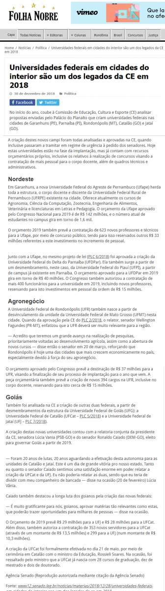 [FOLHA NOBRE] Universidades federais em cidades do interior são um dos legados da CE em 2018