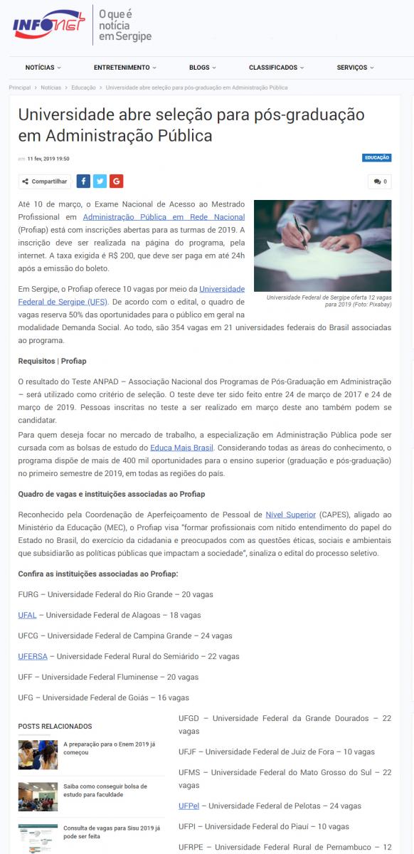[INFONET] Universidade abre seleção para pós-graduação em Administração Pública