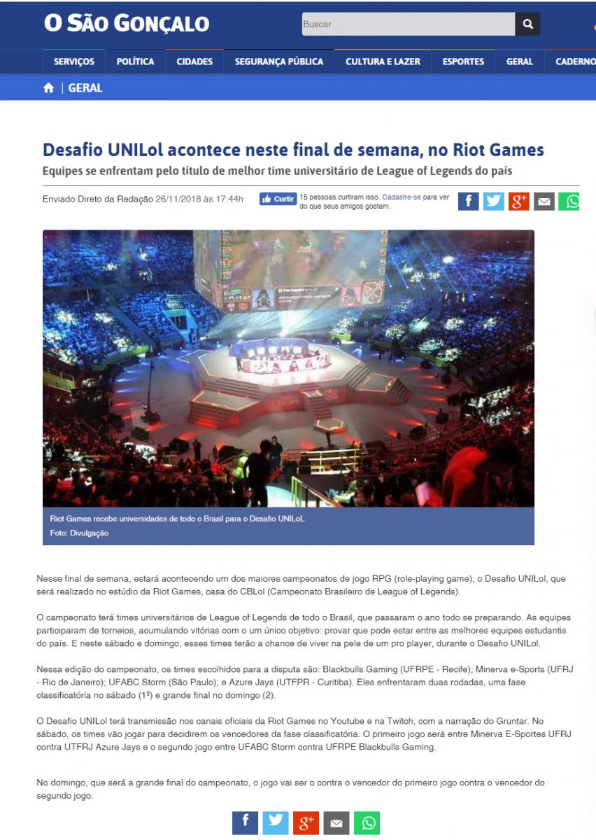 [O SÃO GONÇALO] Desafio UNILoL acontece neste final de semana no Riot Games