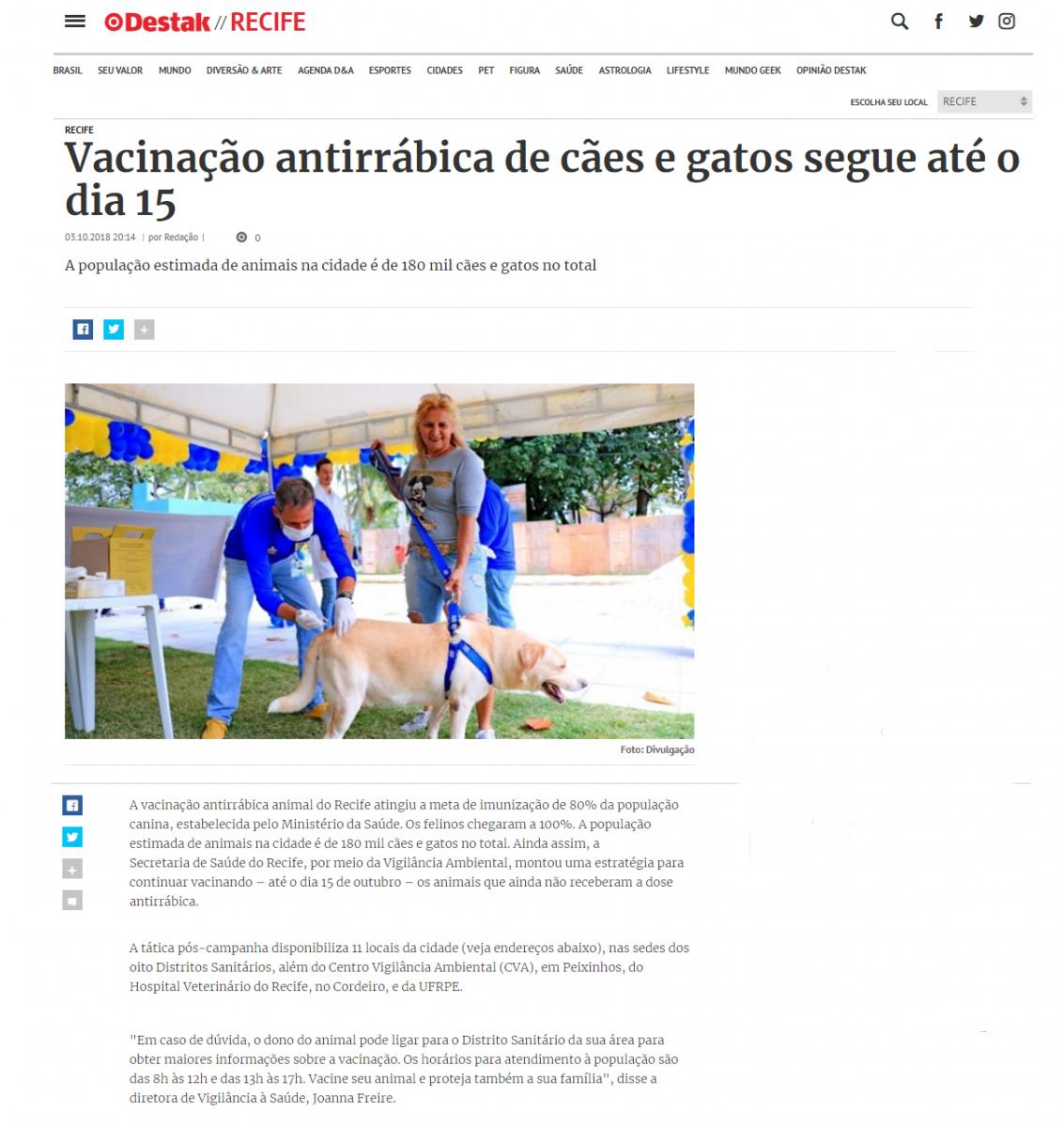 Vacinação antirrábica de cães e gatos segue até o dia 15
